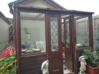The property opens onto the pavement. To the rear there is a paved area with step up to detached sunroom. Step to side access of garage, paved path to rear access, rear lane and hardstanding parking.