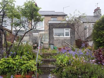 Shed and tiered garden to rear