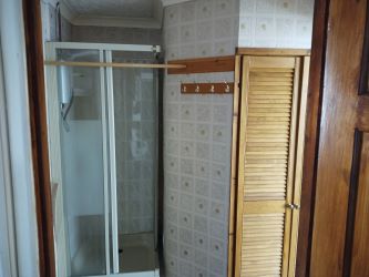 PASSAGE: Shower cubicle, door leading to airing cupboard with radiator, additional door to cloakroom with WC and sink, double glazed window to front.