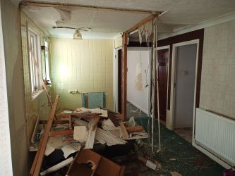 KITCHEN/OPEN PLAN AREA (demolished previous family bathroom): 7’5/15’9 x 17’3 – Double glazed windows to rear, door leading into rear porch. Cupboard housing gas central heating combi-boiler.