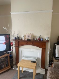 RECEPTION ROOM ONE: 11’05 (MAX) / 10’01 X 9’1 - uPVC double glazed bay window, radiator, decorative fireplace with wooden mantle.