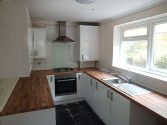 KITCHEN: 7’2 x 13’9 - uPVC double glazed door to side, stainless steel sink and drainer, wall and base units and uPVC window to rear.