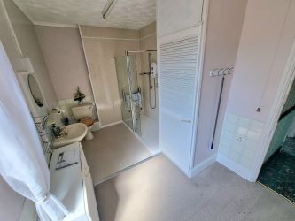 Shower Room 4.11m x 2.36mLow level WC, pedestal wash hand basin and walk-in double shower enclosure. Airing cupboard housing hot water tank. Radiator. uPVC double glazed frosted window to rear.
