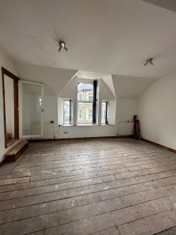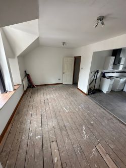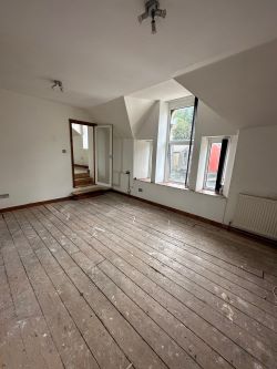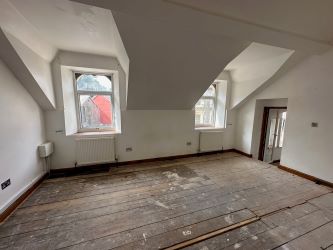 BEDROOM ONE: 10’9 x 17’1 – Two uPVC double glazed windows to front, two radiators and access to loft. Second door leading to living area.